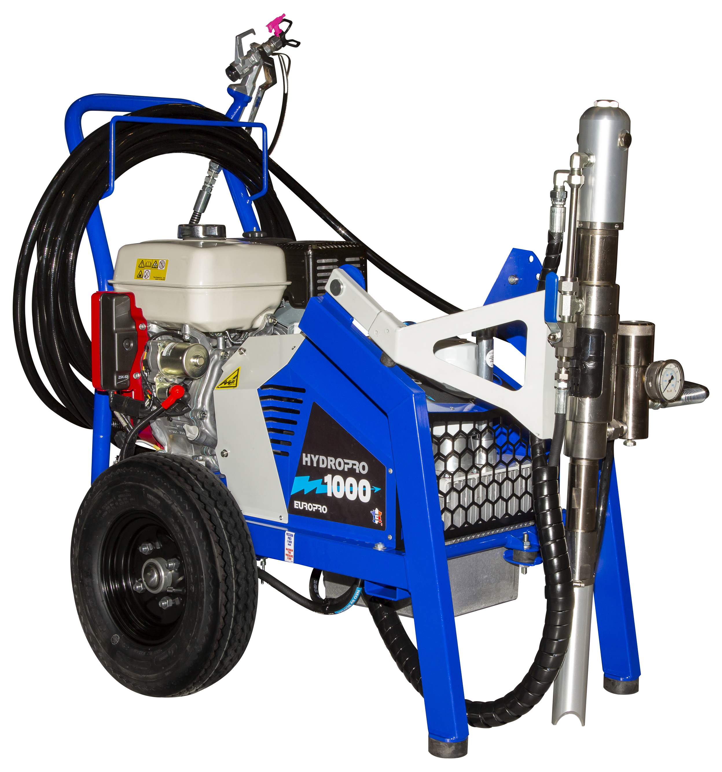 Leistungsstarkes Airless-Spritzgerät, das für große Putz- und Anstricharbeiten ausgelegt ist. Es sorgt für einen kontinuierlichen Materialfluss und gewährleistet so eine gleichmäßige Beschichtung und einen gleichmäßigen Sprühstrahl.
