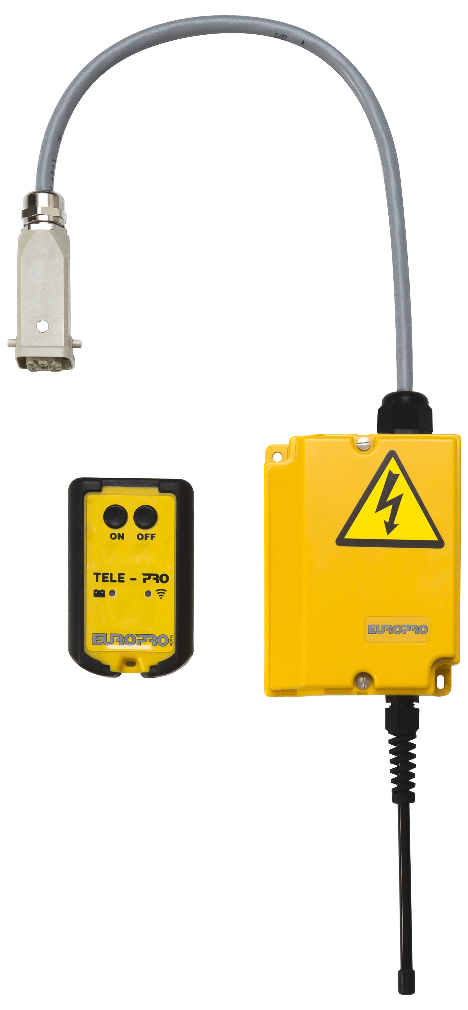 Mit einem Sender und Empfänger geliefert. Der Sender funktioniert mit 2 AA-Batterien Der Empfänger wird von der Maschine versorgt, mit der sie verbunden wird.