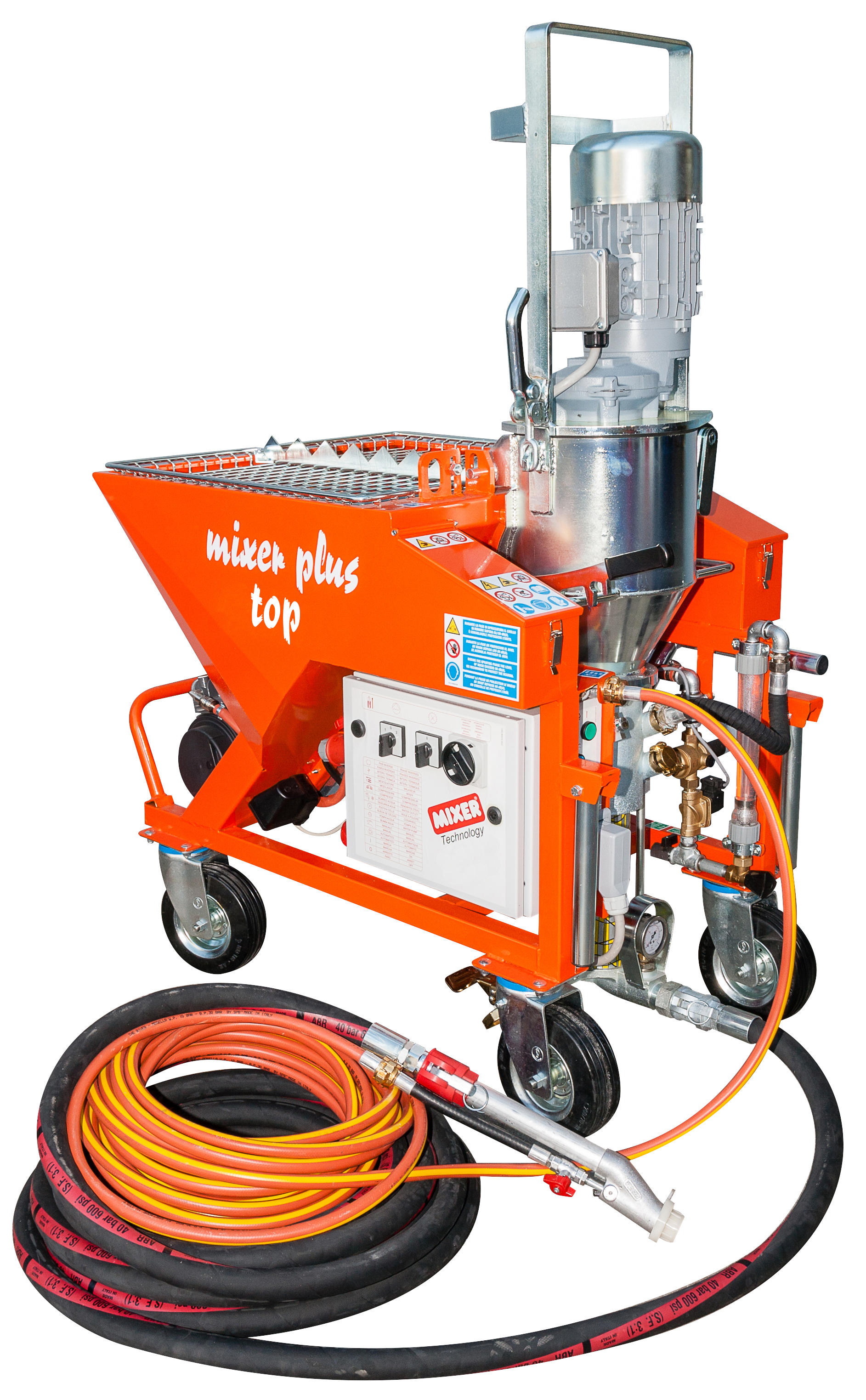 Three-phased (400 V) continuous mixing pump, ideal for spraying pre-mixed surface coatings.
